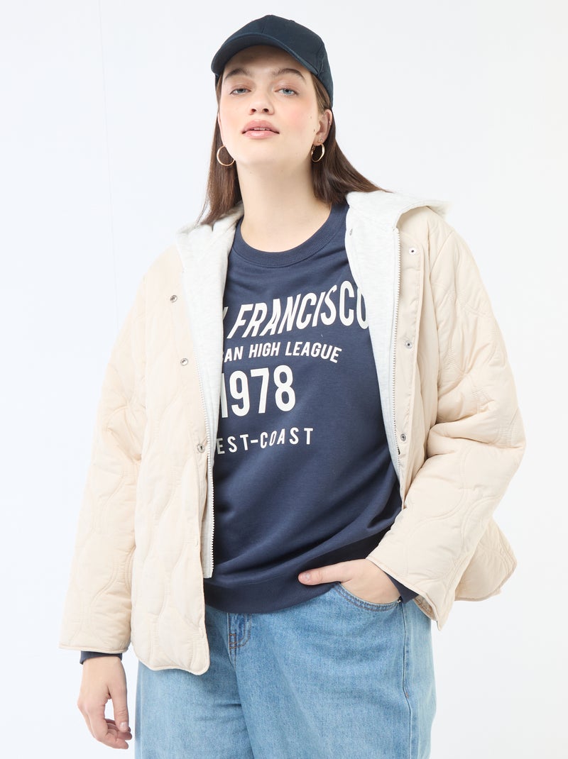 Doudoune à capuche avec plastron intérieur en molleton amovible - Beige