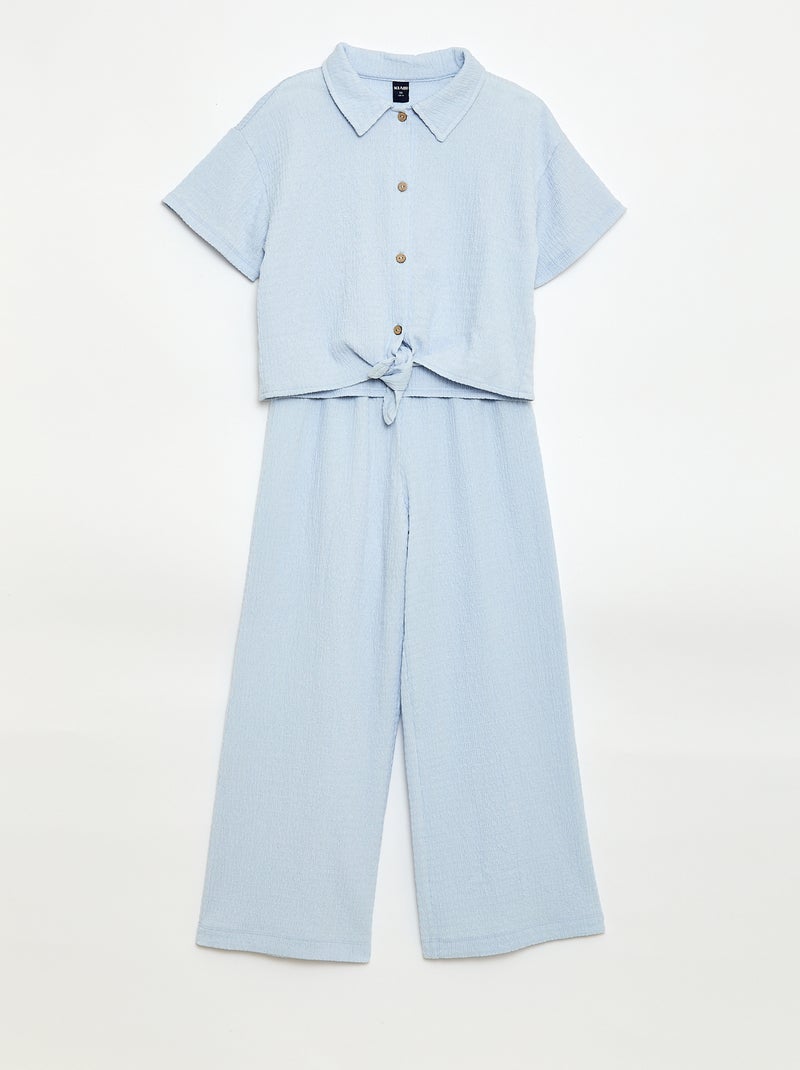 Ensemble 2 pièces chemise + pantalon large - Bleu
