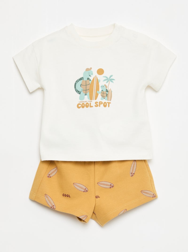 Ensemble 2 pièces en coton T-shirt + short - Blanc