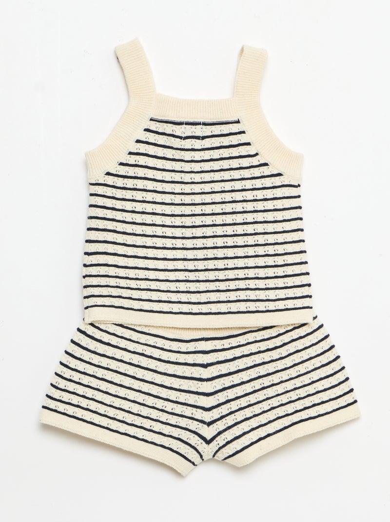 Ensemble 2 pièces short + T-shirt en crochet - Bleu