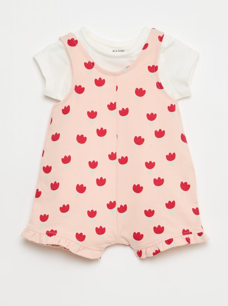 Ensemble 2 pièces T-shirt + combishort - Rose