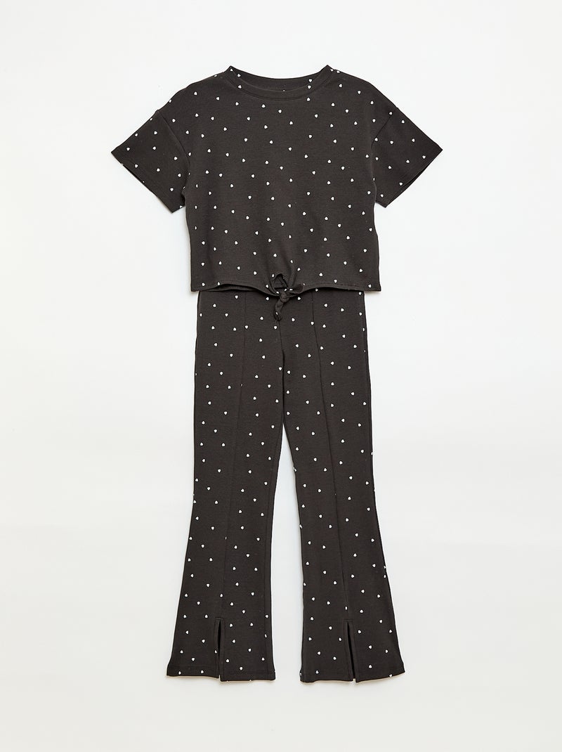 Ensemble 2 pièces T-shirt + pantalon forme flare - Noir