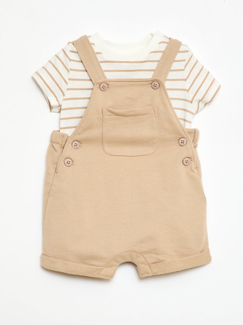 Ensemble 2 pièces T-shirt + salopette short - Beige