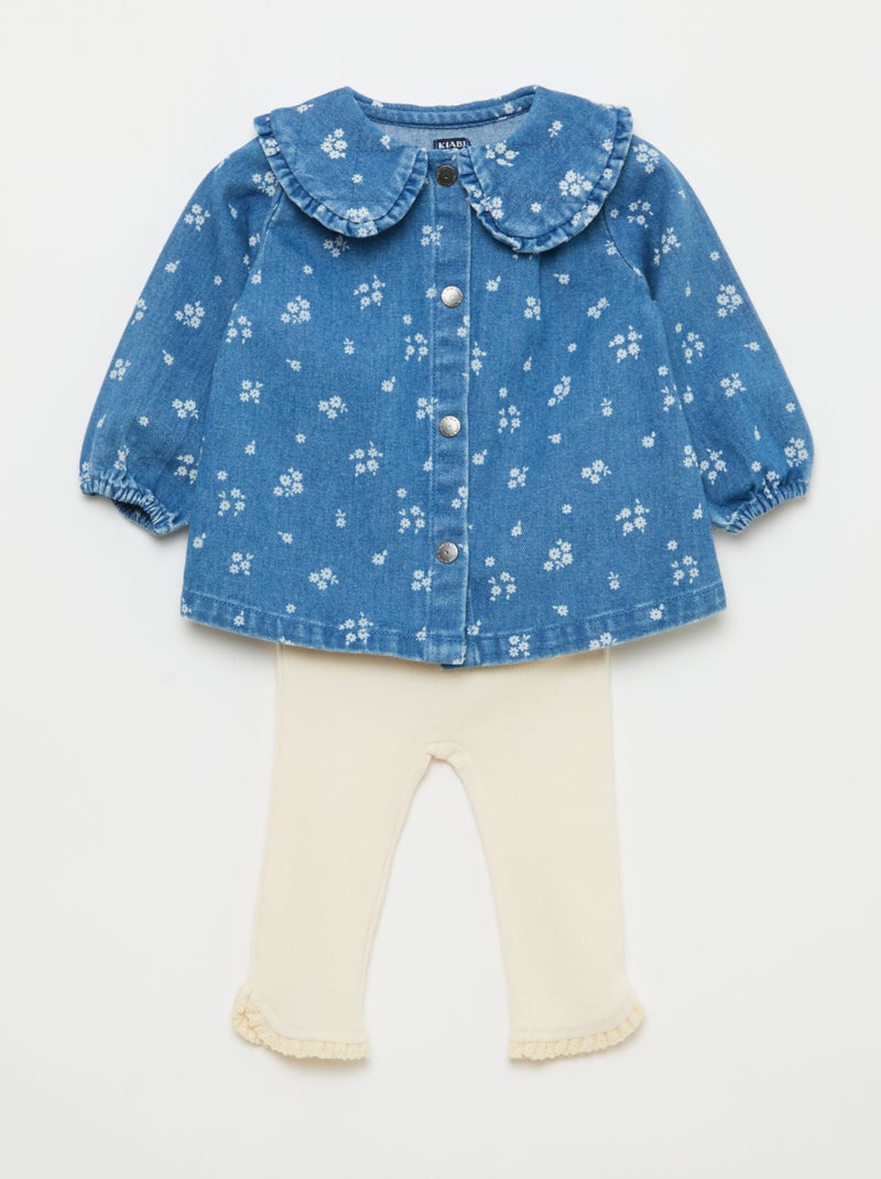 Ensemble blouse en jean + legging - 2 piĂšces - Bleu