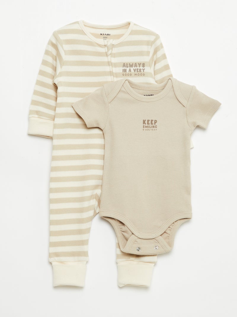 Ensemble body évolutif + dors bien en maille côtelée - Marron