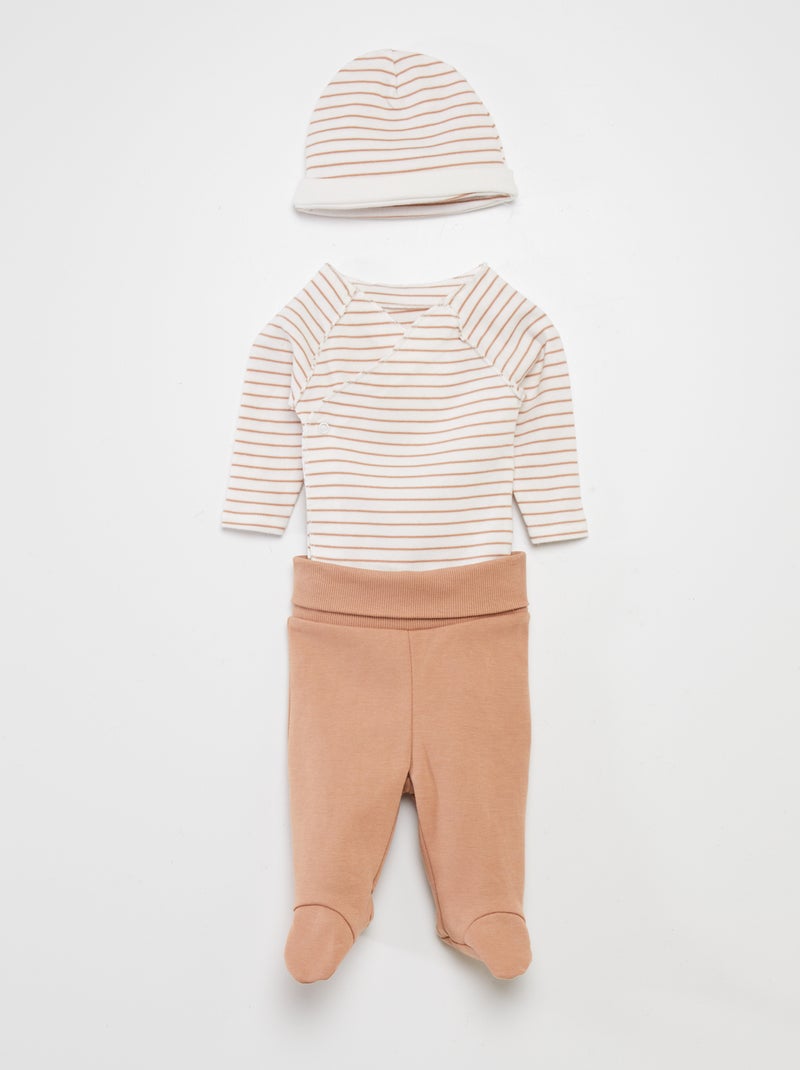 Ensemble body + pantalon avec pieds + bonnet - Blanc 'rayé'