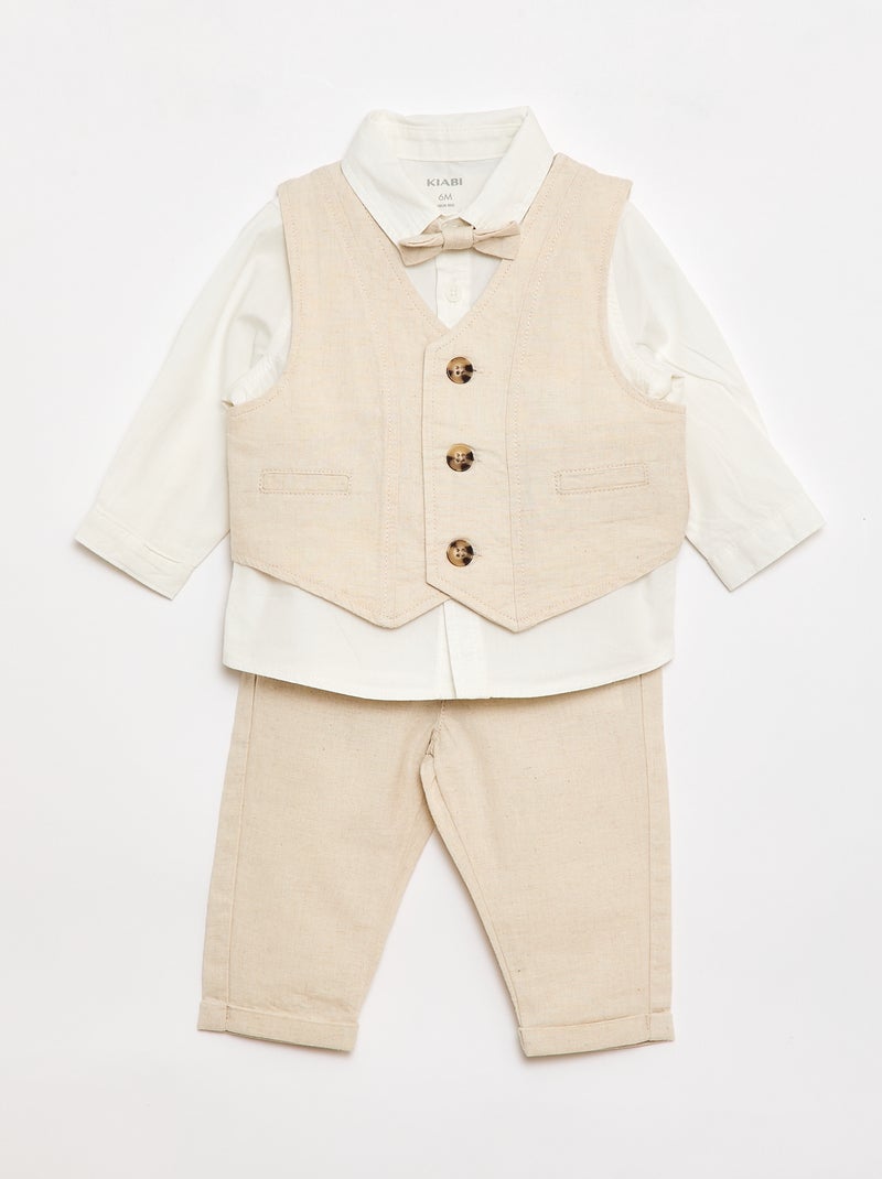 Ensemble de cérémonie 4 pièces en coton et lin - Beige