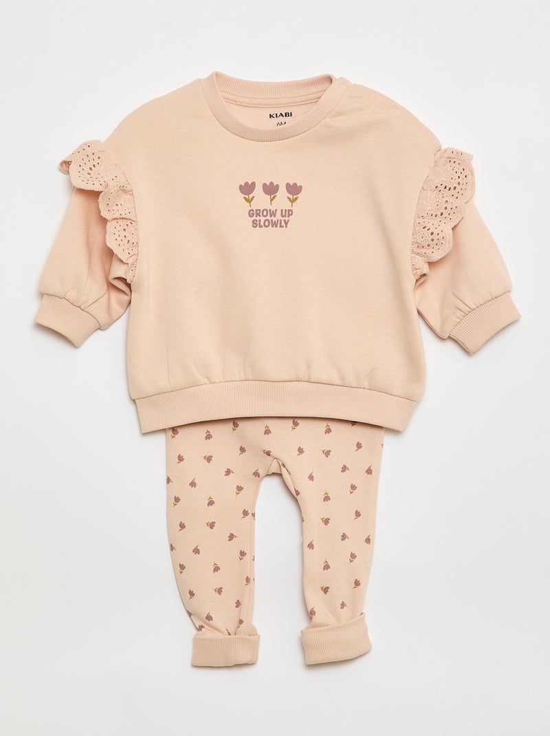 Ensemble de jogging sweat volanté + pantalon - 2 pièces - Rose