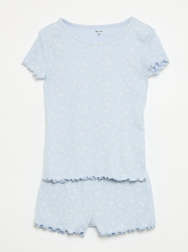 Ensemble de pyjama haut + short en maille côtelée coton - Bleu