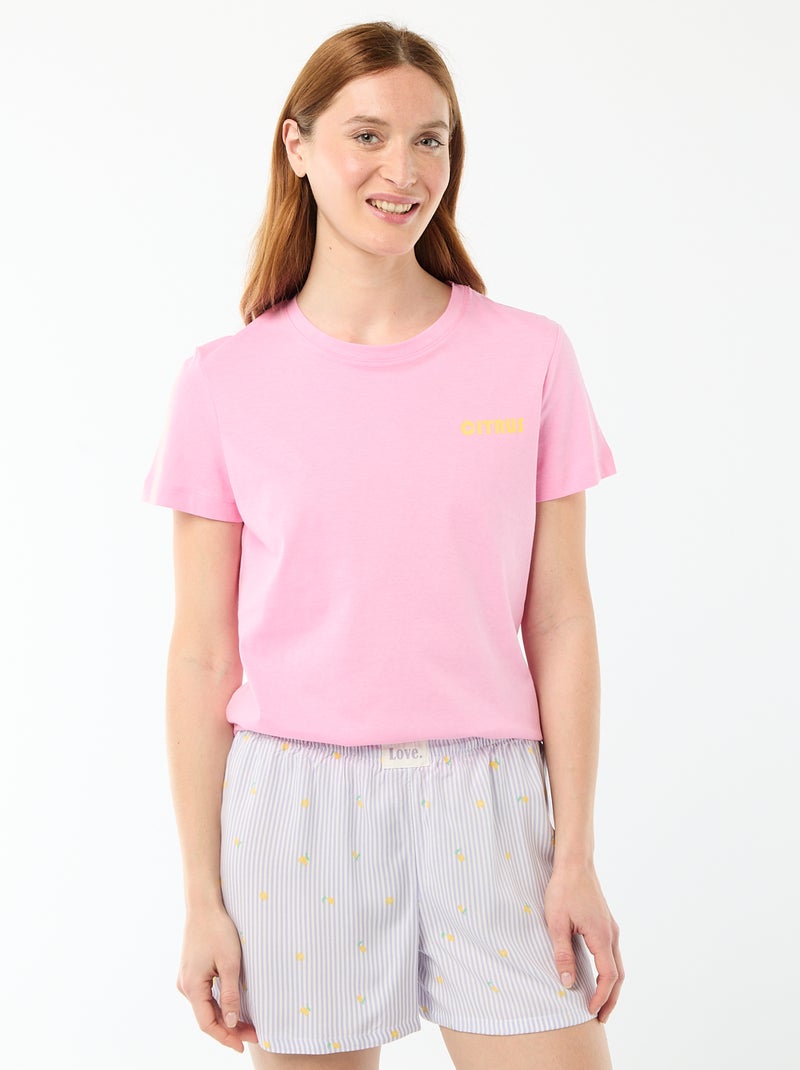 Ensemble de pyjama haut + short léger all-over rayé - Violet
