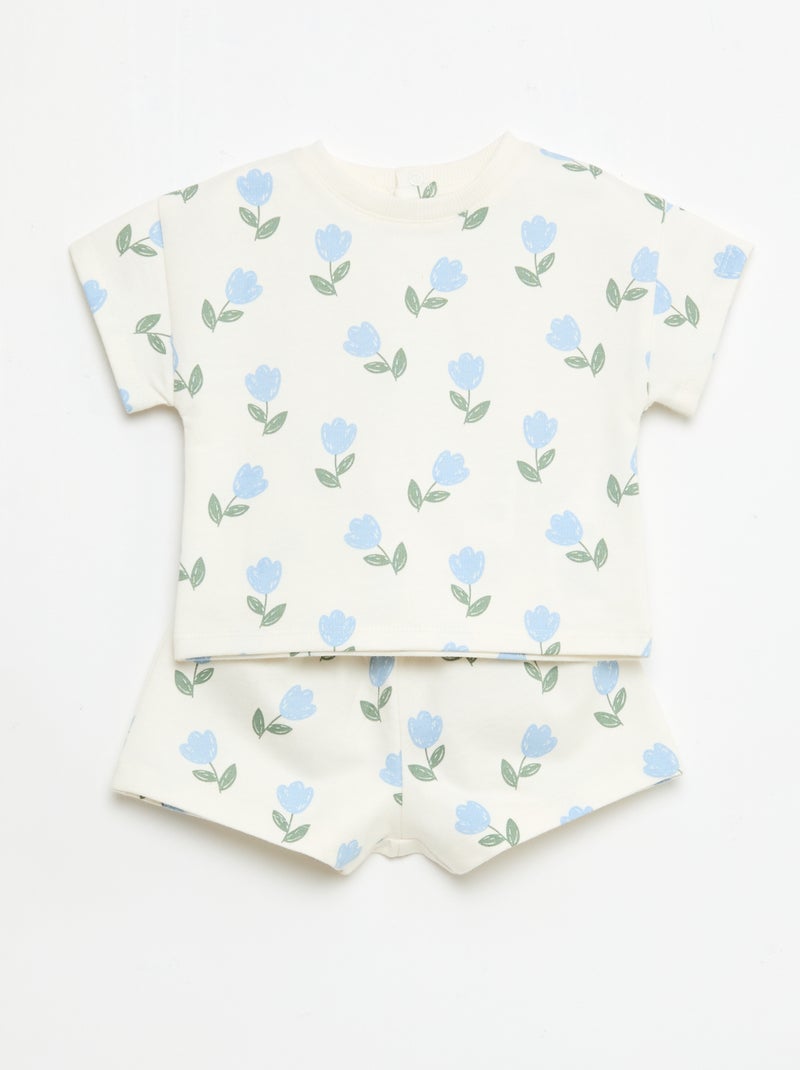 Ensemble imprimé 2 pièces short + T-shirt - Blanc