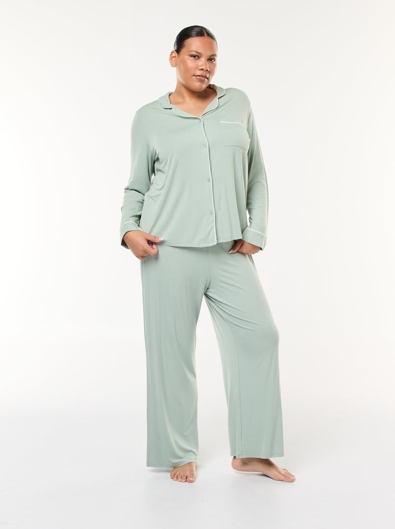 Ensemble pyjama long chemisier + pantalon - 2 pièces - Vert