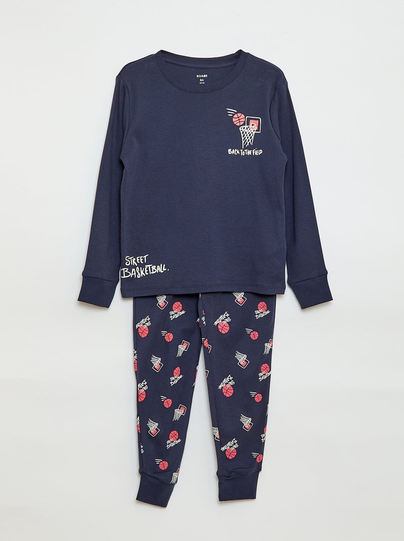 Ensemble pyjama long imprimé - 2 pièces - Bleu