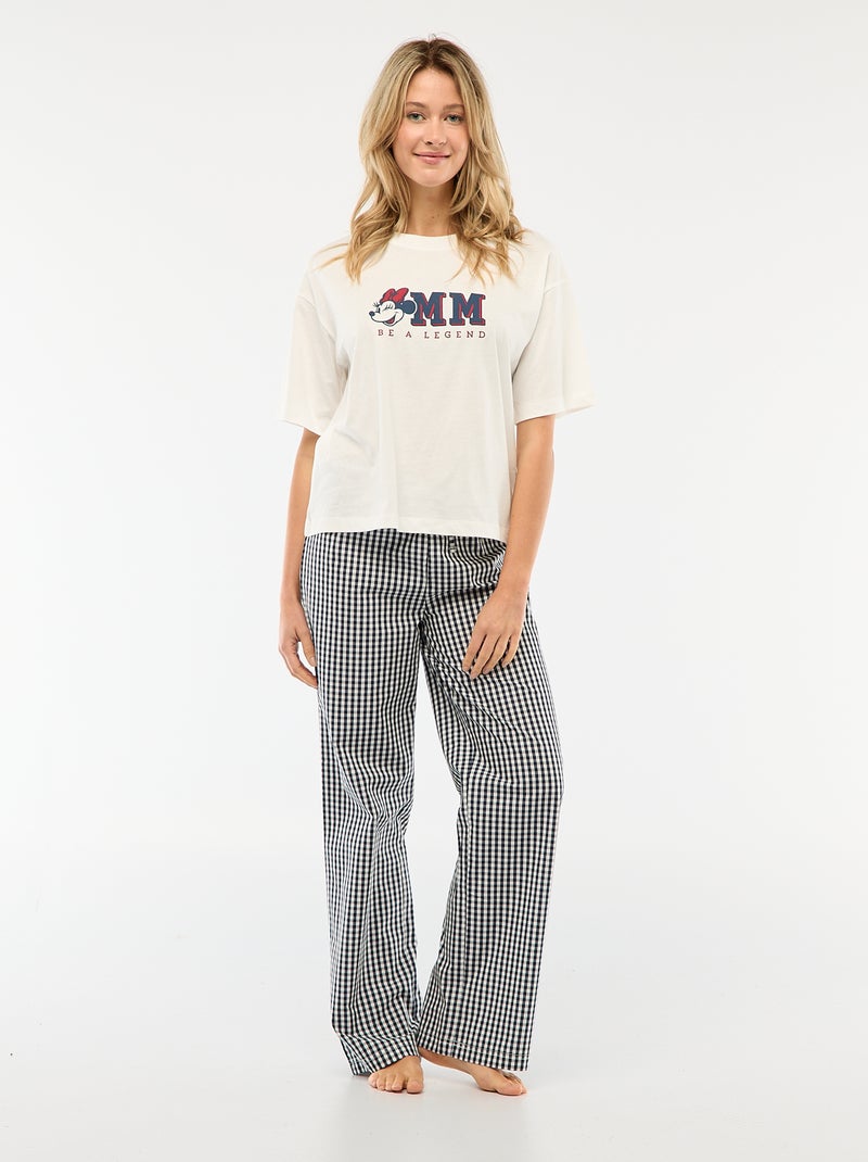 Ensemble pyjama t-shirt + pantalon en popeline 'Minnie' - 2 pièces - Bleu
