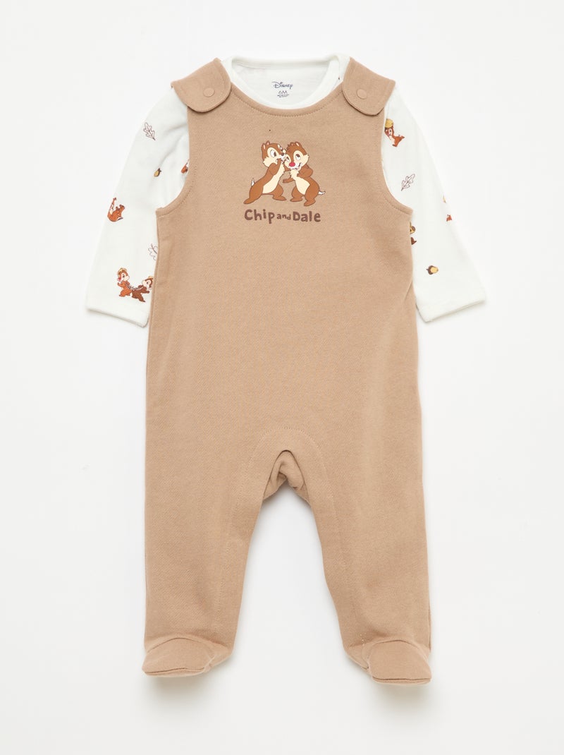 Ensemble salopette dors-bien + body manches longues 'Disney' - Beige