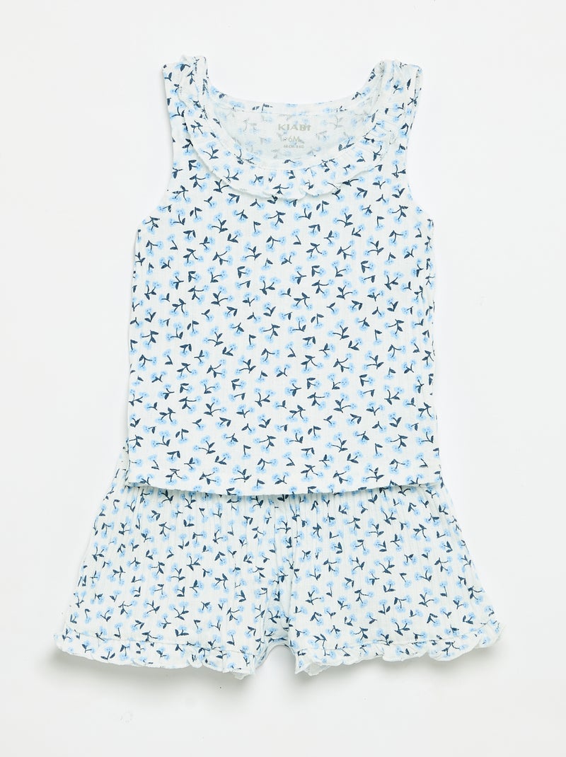 Ensemble short + débardeur en maille pointelle - Bleu