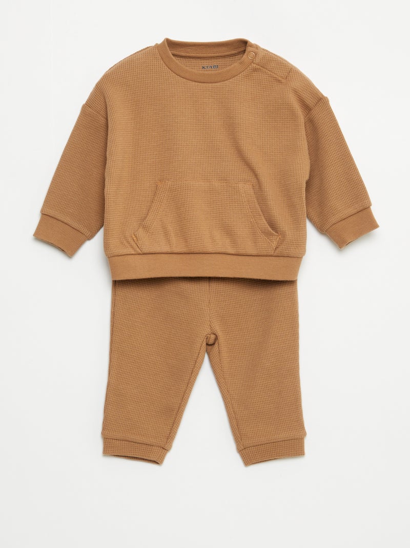 Ensemble sweat + pantalon en matière nid d'abeilles - 2 pièces - Beige