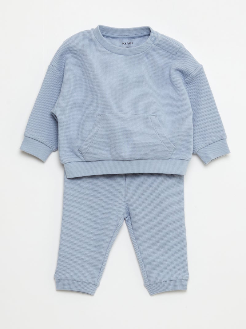 Ensemble sweat + pantalon en matière nid d'abeilles - 2 pièces - Bleu