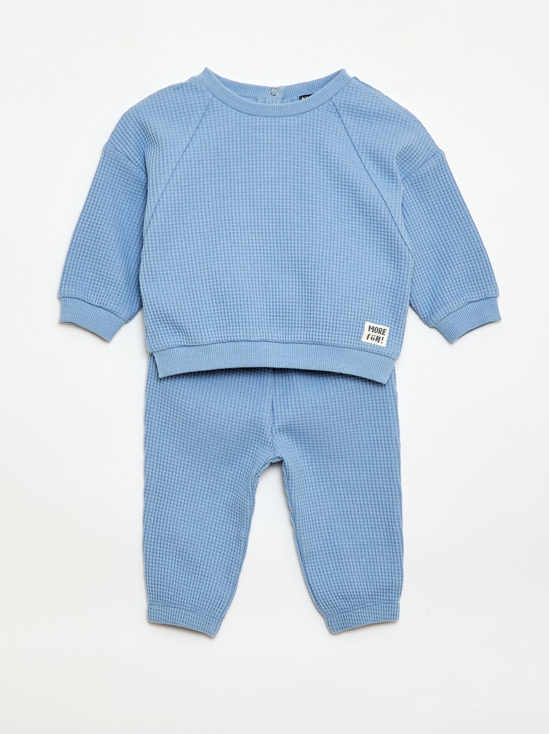 Ensemble sweat + pantalon en nid d'abeilles - 2 pièces - Bleu