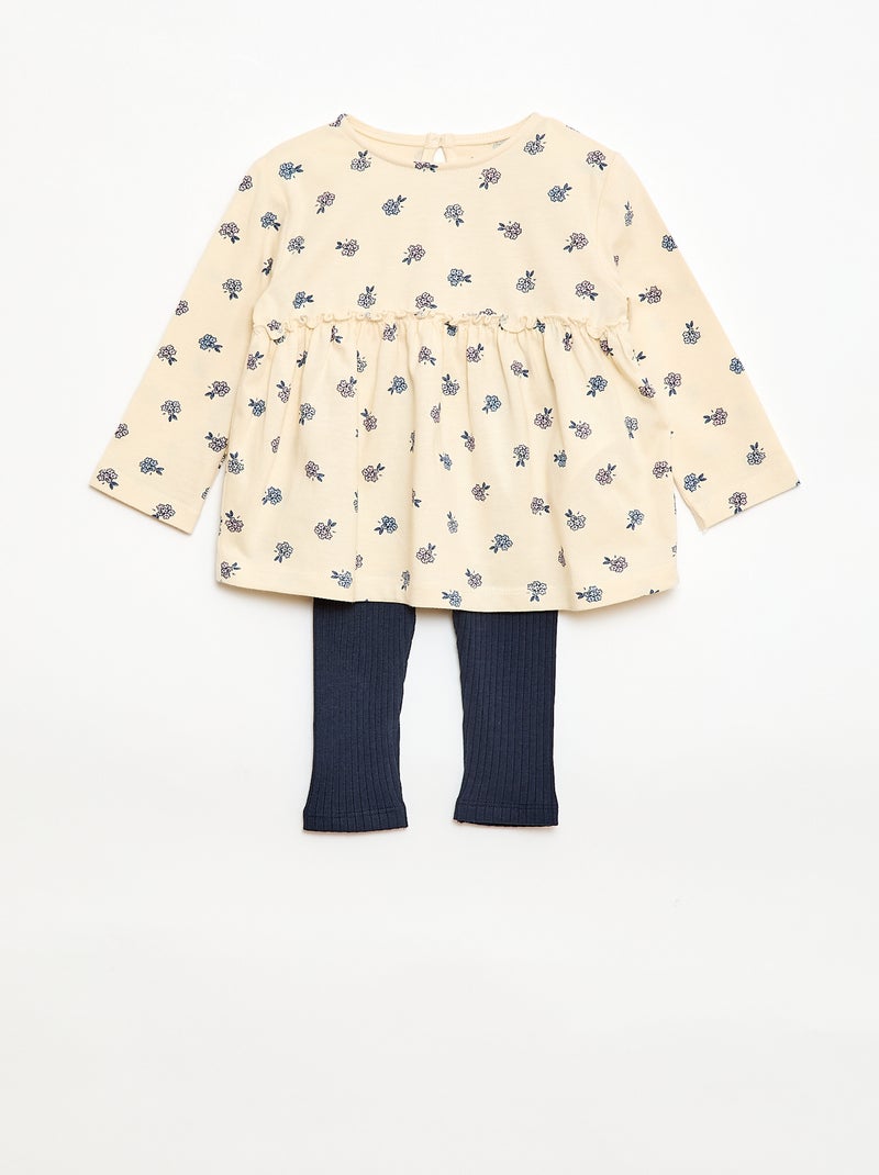 Ensemble t-shirt + legging côtelé - 2 pièces - Blanc