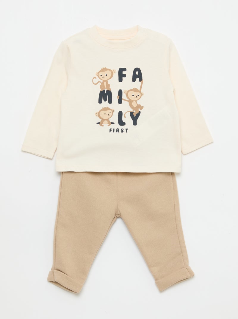 Ensemble t-shirt + pantalon - 2 pièces - Beige