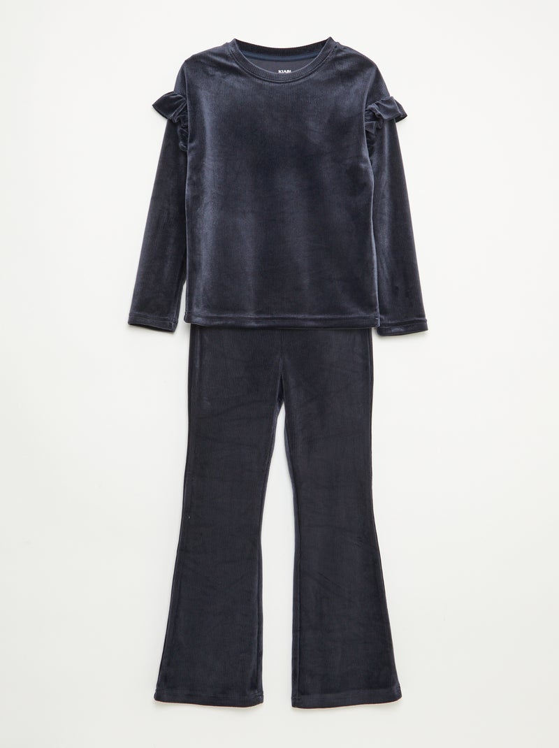 Ensemble t-shirt + pantalon en velours - 2 pièces - Noir