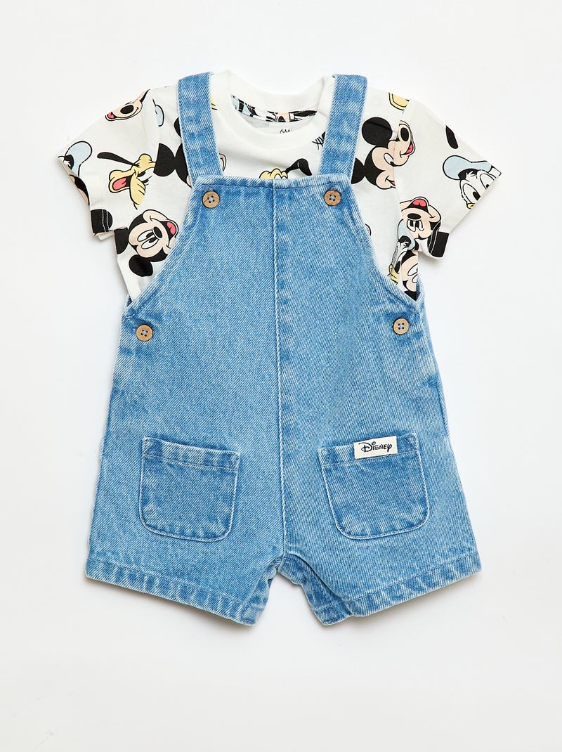 Ensemble t-shirt + salopette 'Mickey' 'Disney' - 2 pièces - Blanc