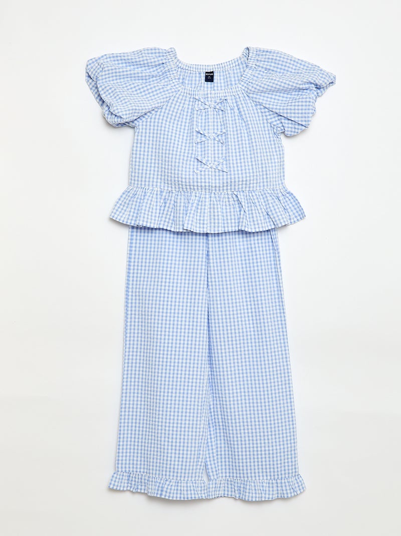 Ensemble top + pantalon avec détails en coton - Bleu