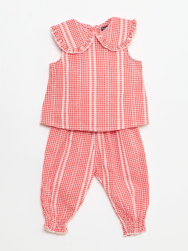 Ensemble vichy 2 pièces blouse + pantalon - Rouge