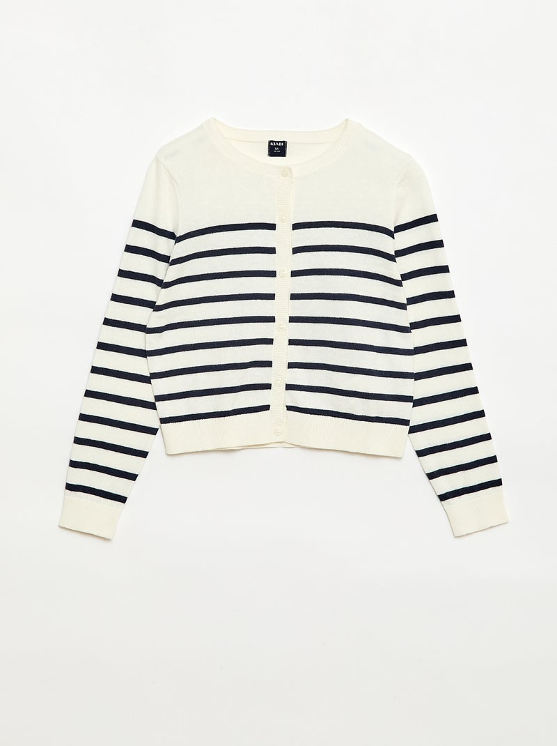 Gilet col rond léger rayé - Bleu