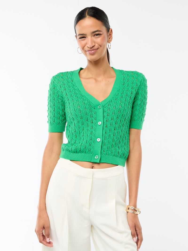 Gilet en maille ajourée à manches courtes - Vert