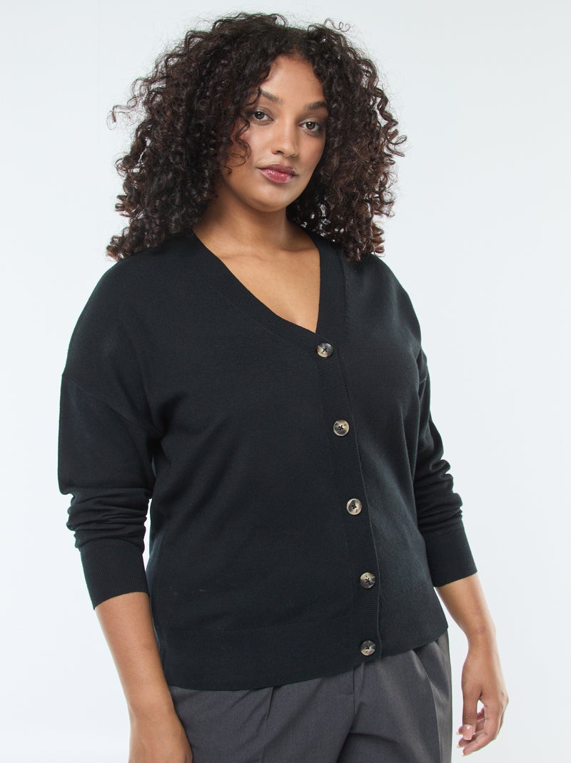 Gilet en maille fine avec ouverture boutonnée - Noir