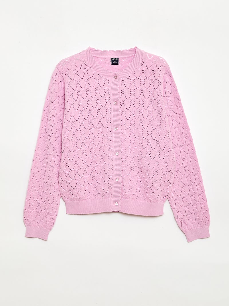 Gilet fantaisie en maille ajourée - Rose