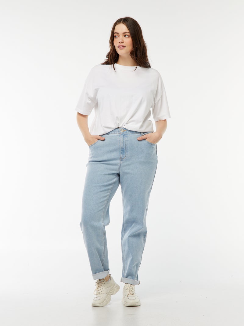 Jean mom taille haute 5 poches - L32 - Bleu
