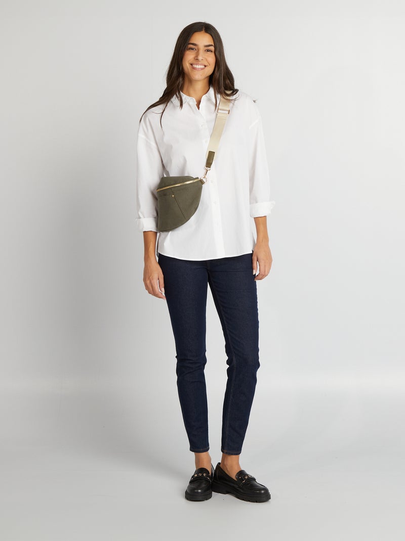 Ce produit est composé d'un minimum de 20% de coton issu de textiles usagés ou de chutes de production. Grâce au recyclage sans teinture: moins d'impact sur les ressources naturelles, moins de produit chimique. Il a été délavé avec un procédé plus économe en eau et en produits chimiques.