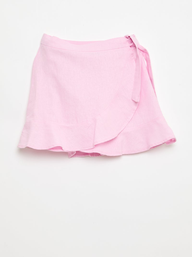 Polyvalente et chic, cette jupe à volants en lin mélangé est parfaite pour un look estival élégant.
