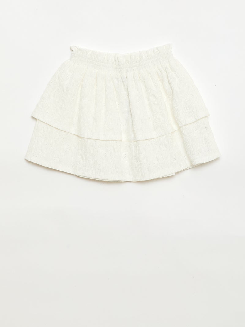 Jupe en broderies anglaises et volants - Blanc