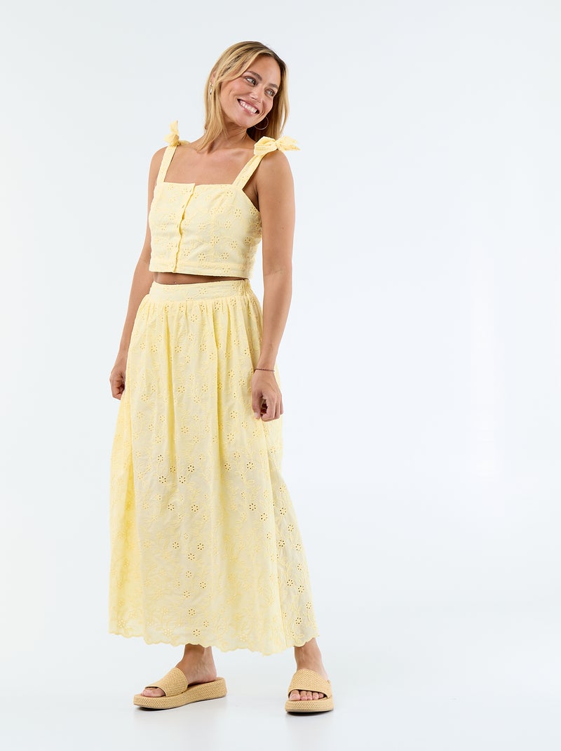 Jupe longue avec broderie anglaise - Jaune