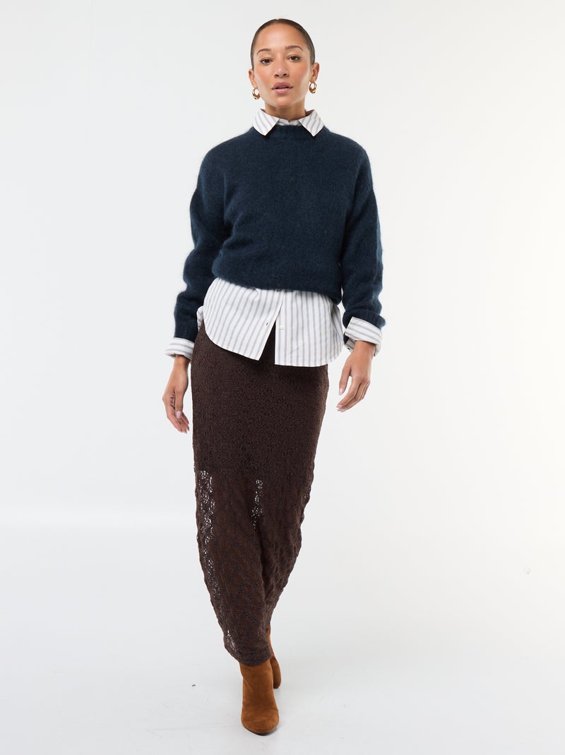 Jupe longue en dentelle - Marron