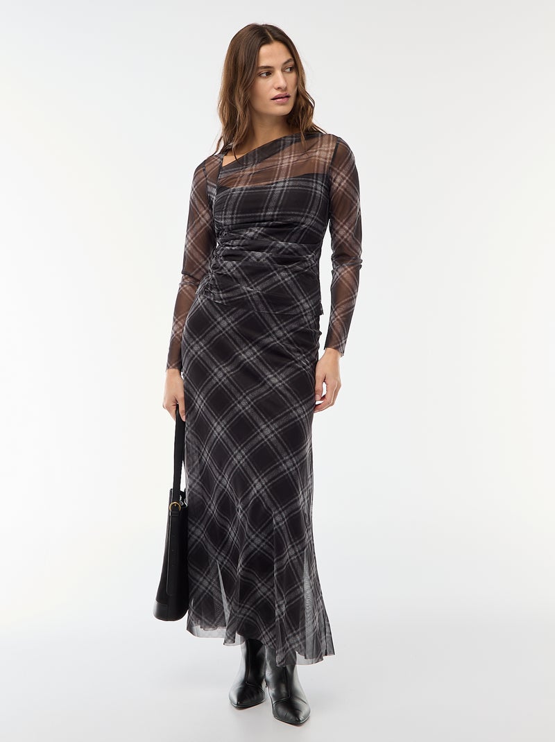 Jupe longue en mesh à carreaux - Gris