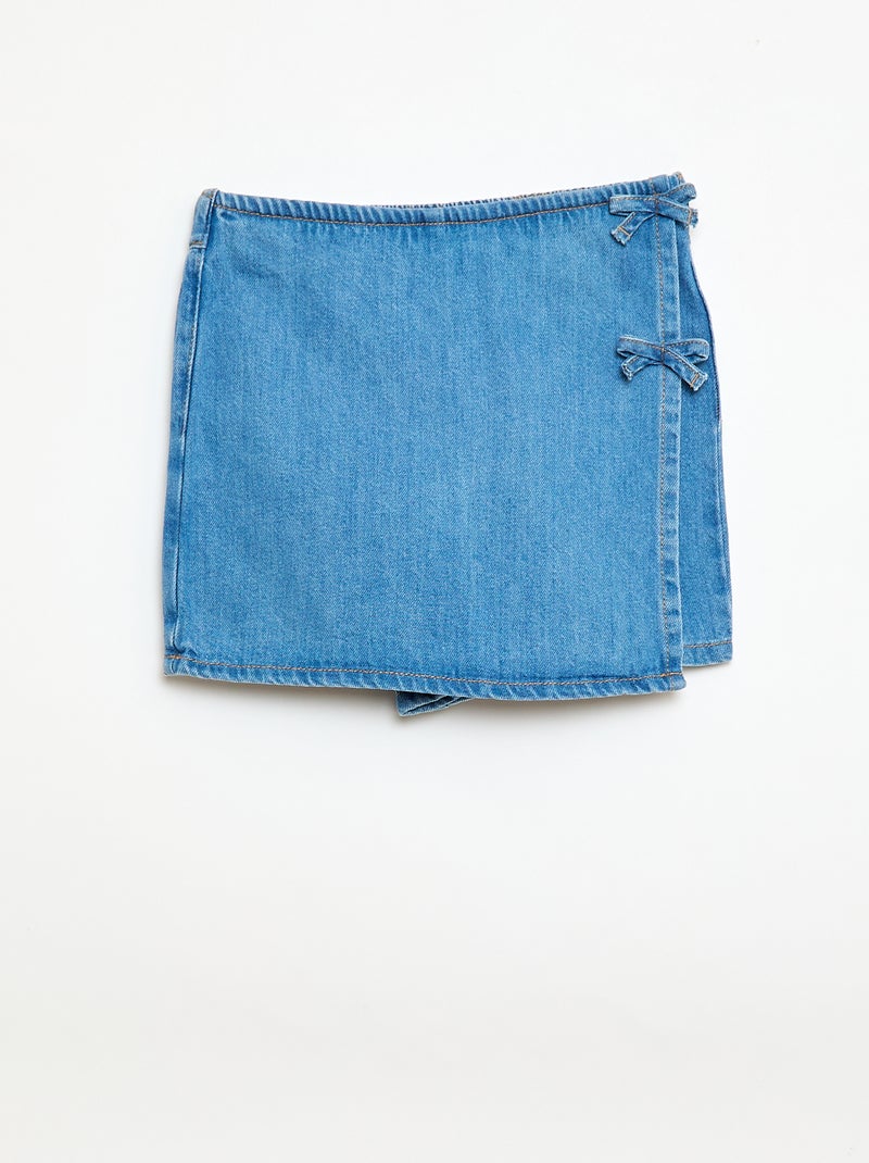 Jupe short courte en jean avec nœuds - Bleu