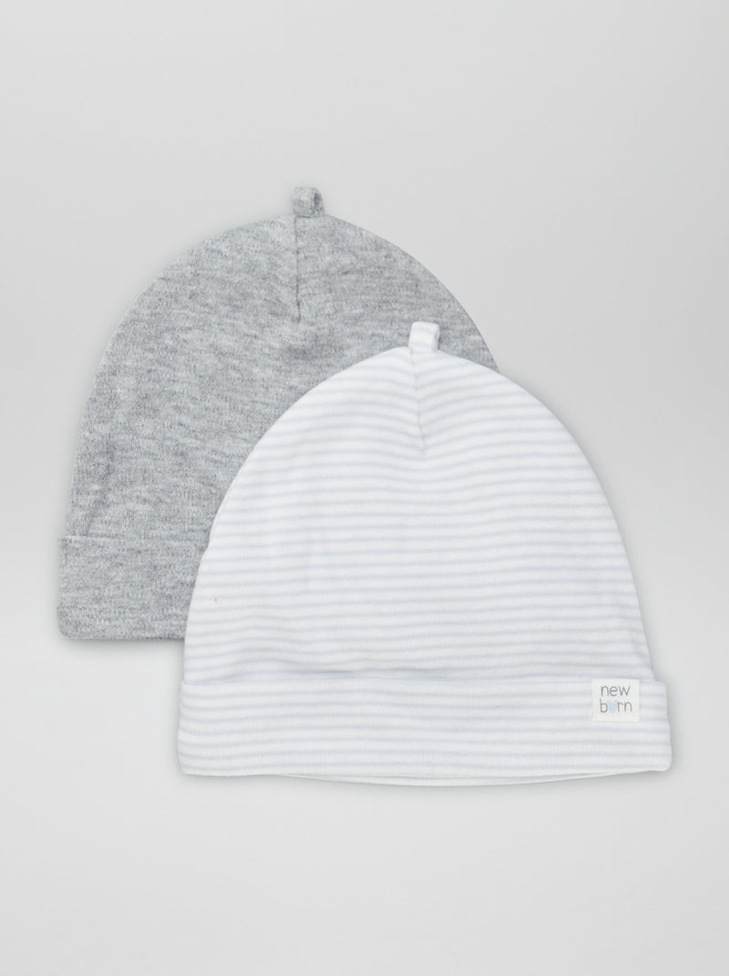 Lot de 2 bonnets nouveau-né - Gris/blanc