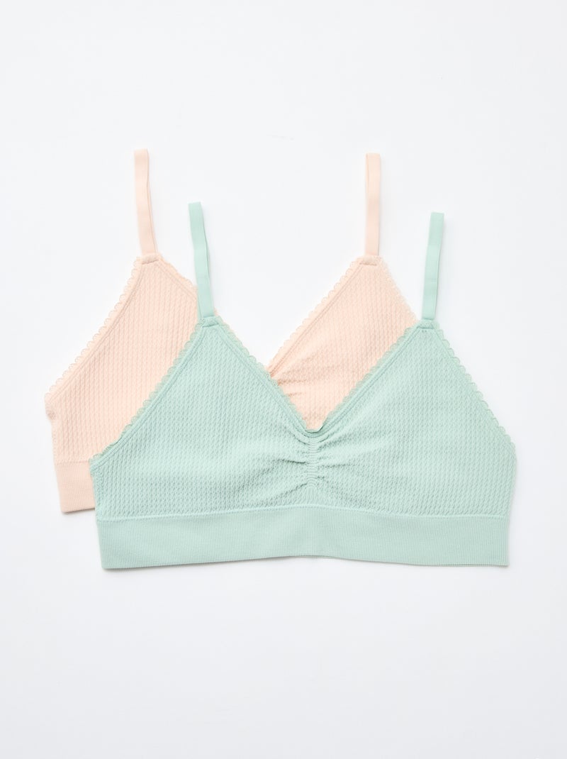 Lot de 2 brassières en maille reliefée - Vert/rose