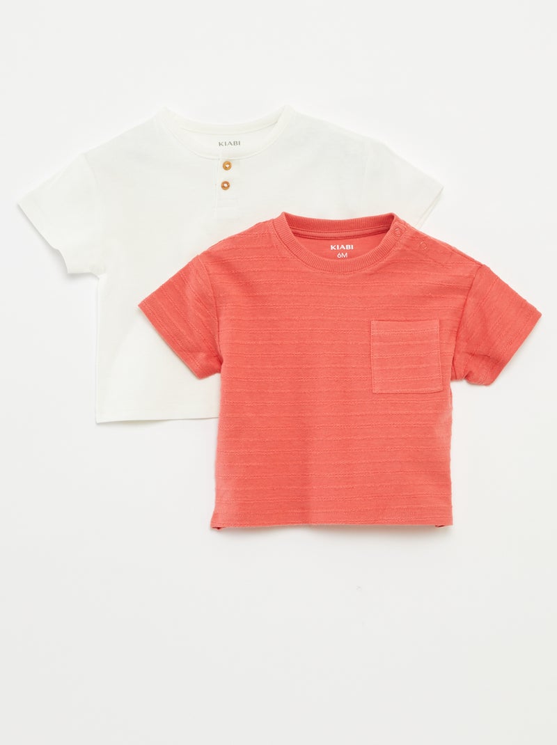 Lot de 2 t-shirts unis à manches courtes - Blanc/corail