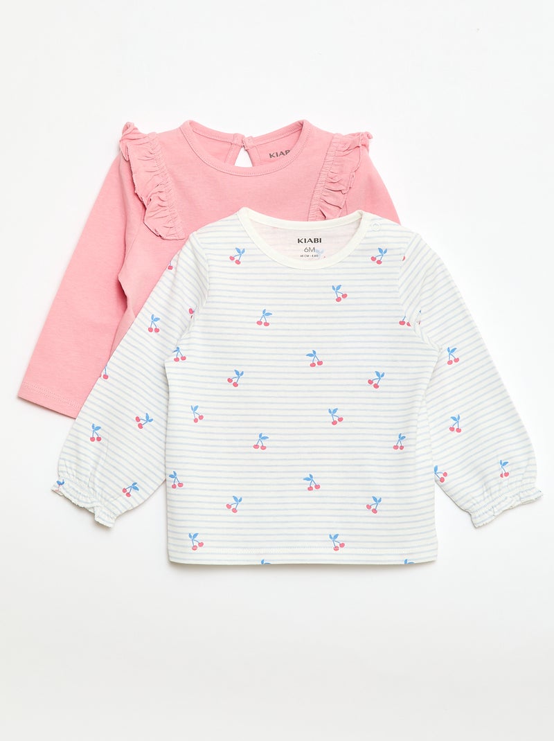 Lot de 2 tee-shirts imprimés - Blanc/rose