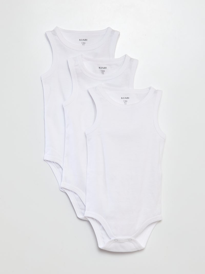 Lot de 3 bodies blancs à bretelles larges - BLANC