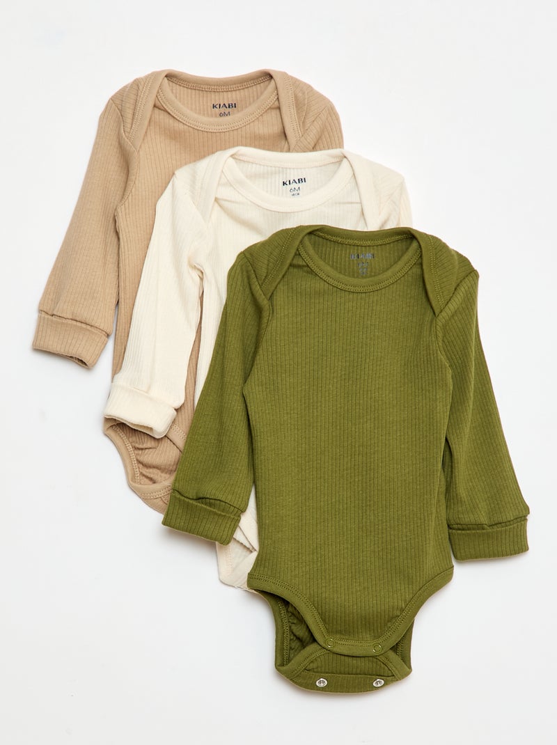 Lot de 3 bodies évolutifs col US et manches longues - Beige