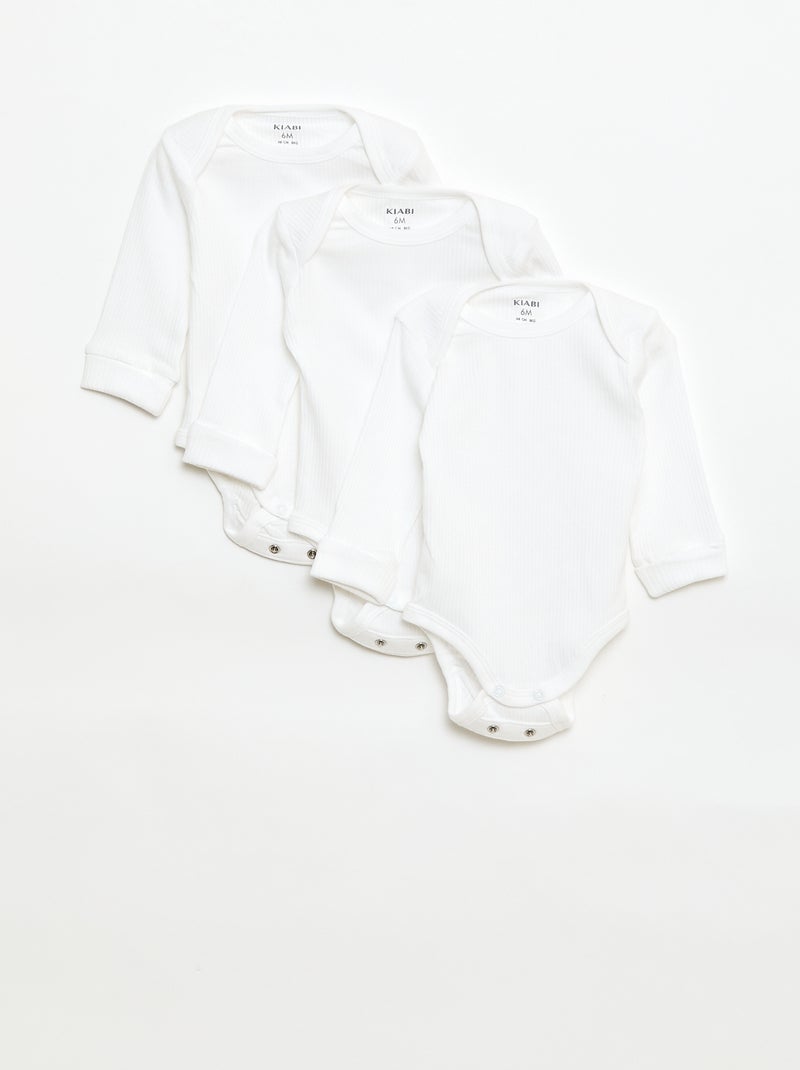 Lot de 3 bodies évolutifs col US et manches longues - Blanc