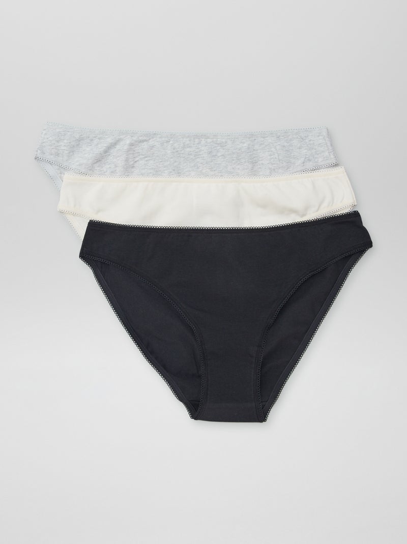 Lot de 3 culottes en coton - Noir/gris/blanc