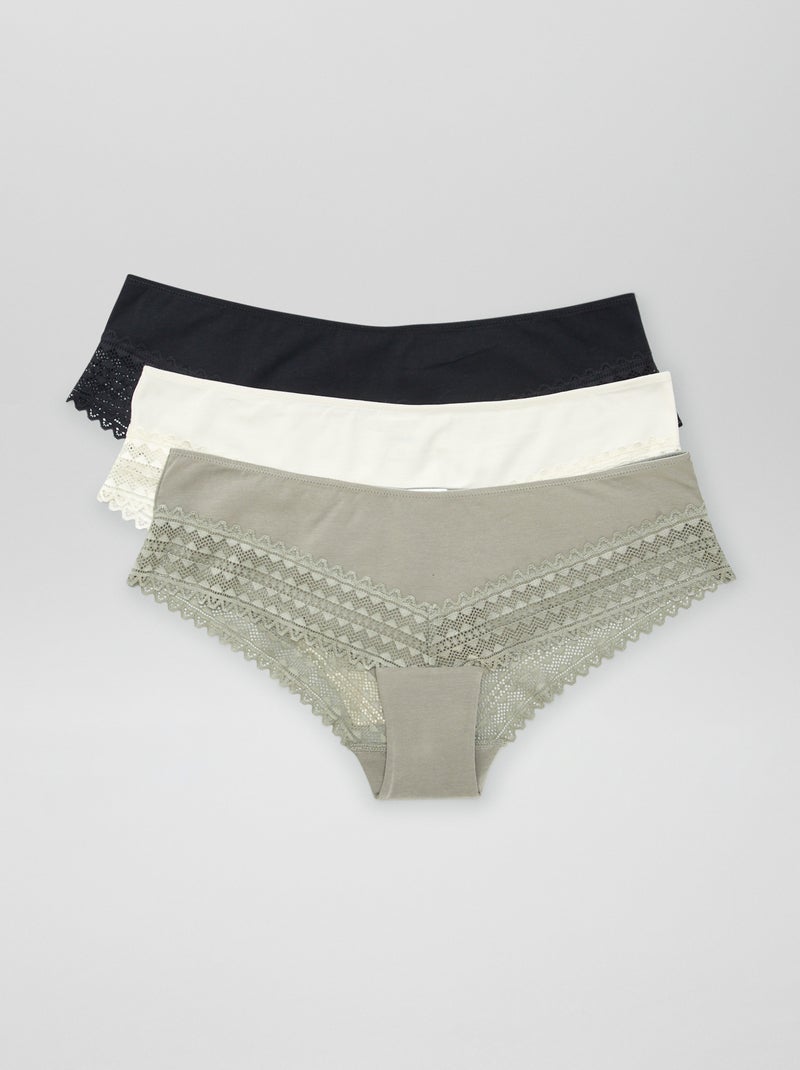 Lot de 3 shorty avec dentelle - Kaki/ecru/noir